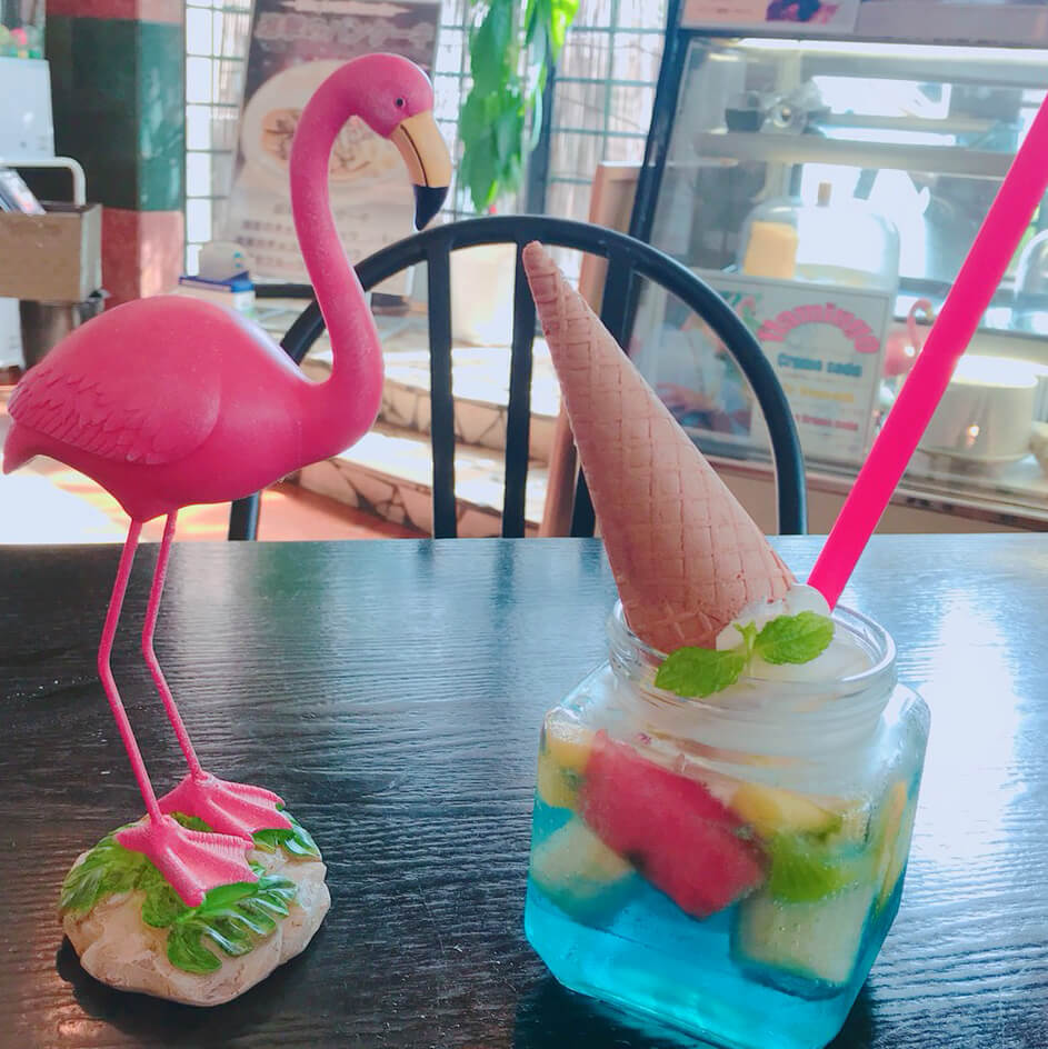 夏限定の見た目もかわいいクリームソーダソフトクリームを丸ごと1つ使い器の中にゼリーが入っているので ゼリーのプルプルの食感とソーダのシュワシュワが両方楽しめて見た目もインスタばえバッチリのこの夏、旬のフルーツを使った限定オススメメニューです!